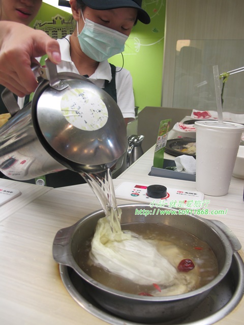 接著服務人員就會幫忙把素高湯倒入鍋裡
