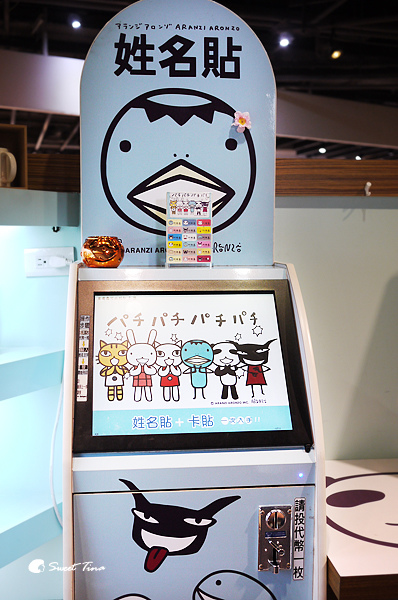 一旁還有一台姓名貼機,一張是代幣一枚(50元),和櫃台換取就可以投幣囉!