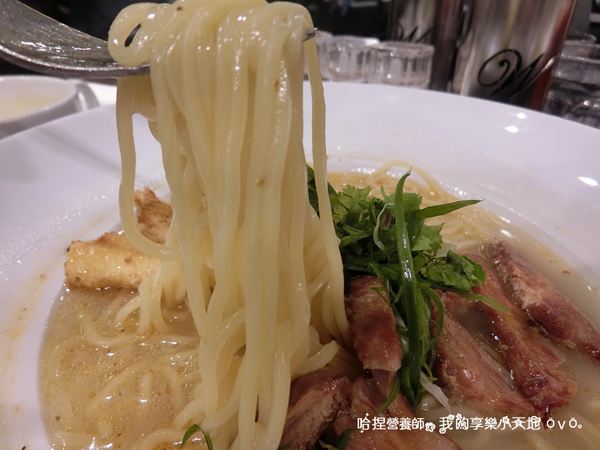 從店員一端上桌就傳來陣陣麻油香,大家迫不及待的想品嚐這道創意料理,它的麵富有彈性,介於拉麵和油麵之間,吸附湯汁能力佳,很夠味