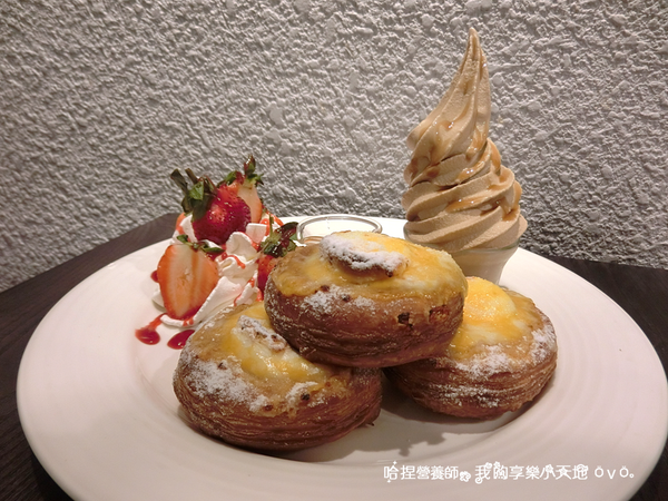 焗烤蜜糖草莓可頌甜甜圈佐手工奶茶冰淇淋 190元