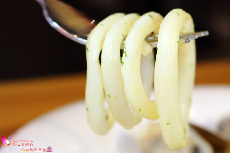 而裡頭鋪滿餡料的部份則是厚軟有嚼勁,