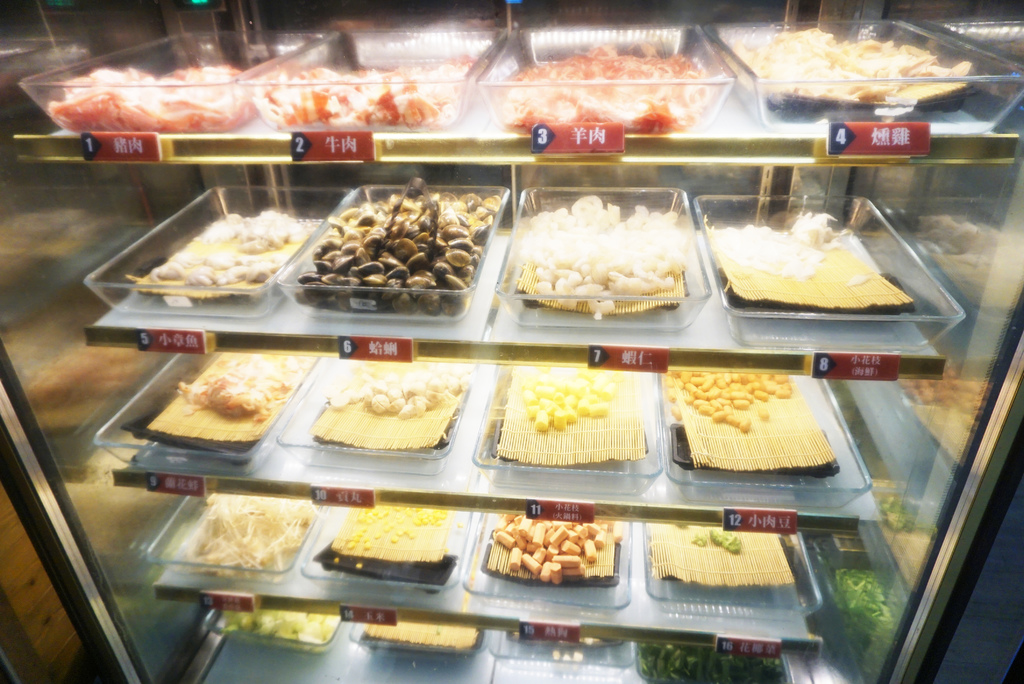 外面貼了點餐的流程,透明玻璃可以看到二十樣配菜,當然是任君挑選,共分成三種數量的選擇價位也不同。