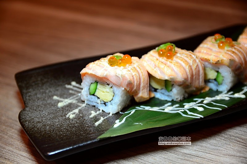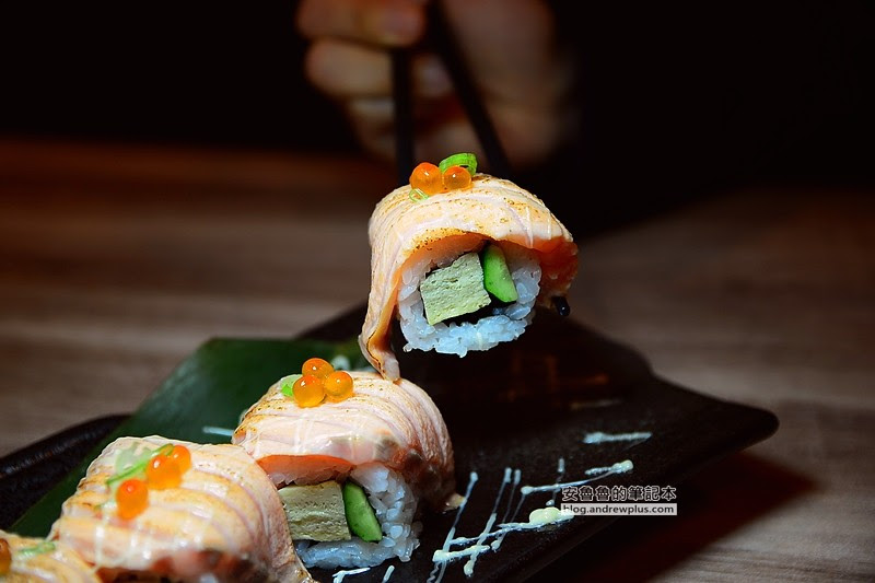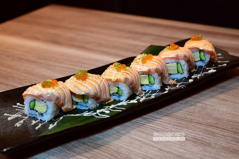 ▼常溫的醋飯搭配軟嫩三分熟的鮭魚,用鮭魚卵點出鹹味,吃進嘴裡不但有玉子燒的口感和香甜還有小黃瓜的清脆