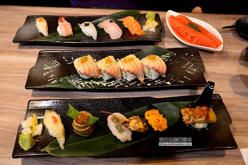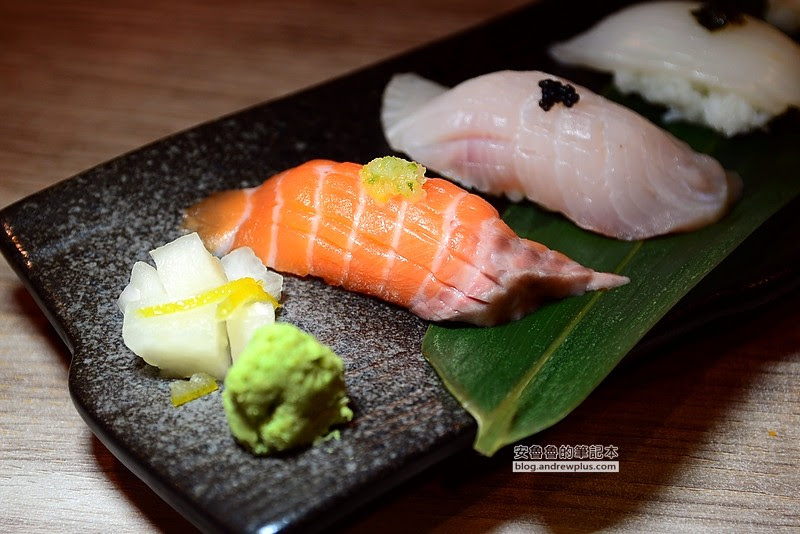 ▼在我們享用鮭魚捲的時候,兩套主餐的主菜 - 握壽司也上桌囉!