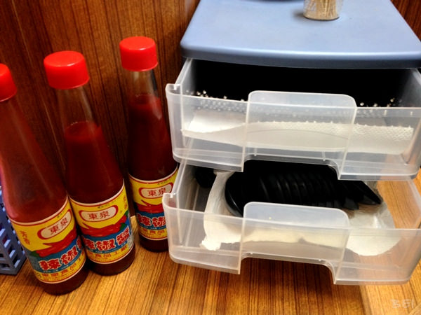 餐具從櫃檯旁自己取用,還有東泉辣椒醬喔(ノ>ω<)ノ