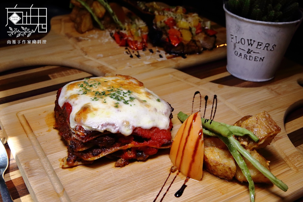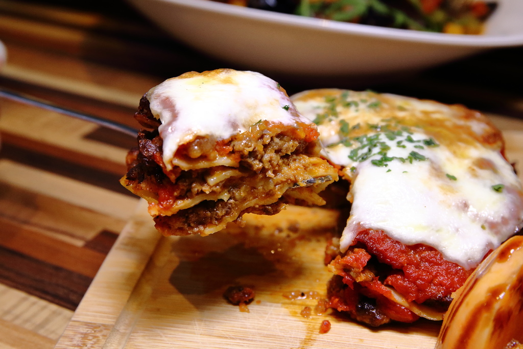 黃金比例調製一層肉醬一層麵,手工疊出方塊麵,加上大量起司一齊焗烤,吃起來層次分明、口感豐富,