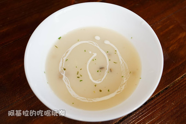 雖然湯裡面只有些許蘑菇碎塊,但是有濃郁的奶油和蘑菇的香味,算是蠻好喝的。