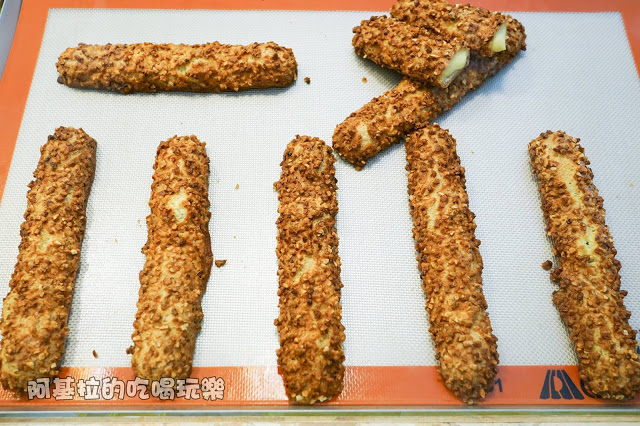 ▲展示櫃裡的「咕粒姆北海道泡芙」,看起來有一點像沾碎核桃的吉拿棒,裡面的餡料好誘人。