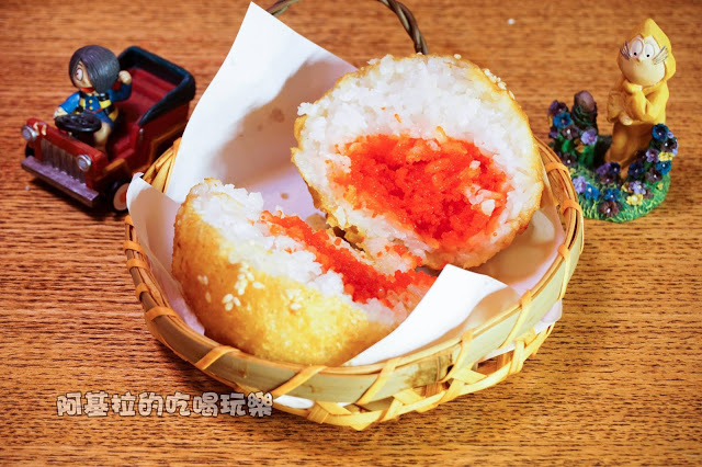 飯糰的外層有酥脆的口感,雖然有經過油炸,但是沒有油膩感,也不會像鍋巴一樣硬硬的,米飯仍保有彈性和米香,中間還夾了大量的魚卵,添加了一點海鮮的鹹味,整體的味道相當不錯。