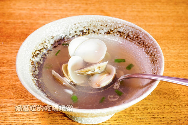 湯頭喝起來很清爽,帶有蛤蠣的鮮味,肉質的部份也很飽滿,咬下去的時候可以感覺到裡面的湯汁。