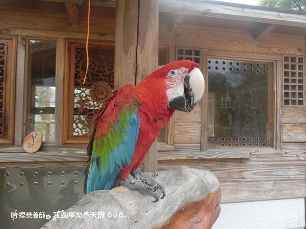 趁著這個空檔,到園區繞一繞,發現了店鸚鵡-ㄚ財,聽說牠會說自己的名字和講"你好",但好可惜那天牠都不說話