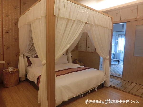 一張峇厘島風格的公主床就擺在正中間,但壁紙卻又充滿了日式風味,整間房間還可以聞到木頭的味道!