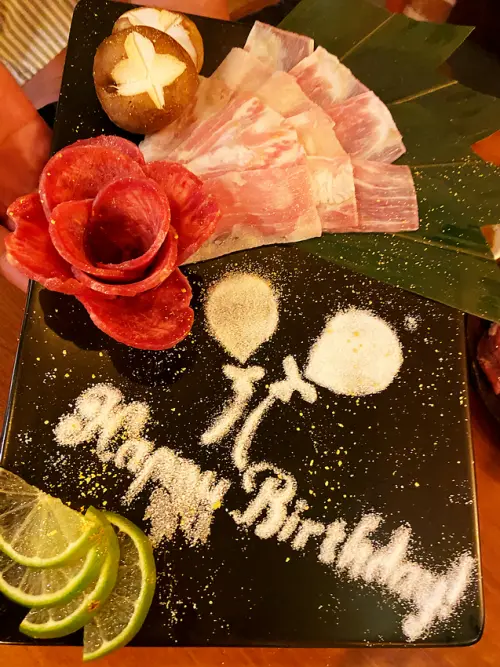 蔓越莓燒酒這是我加點的飲料,一杯約100元,外表像粉紅色的汽泡酒,喝起來的口感如同日式沙瓦,帶點微甜,也帶點微苦,具有淺淺酒精的醺味,有一點汽水的剌激感,喝起來的口感清爽迷人,可以平衡燒肉的油膩感.(喝酒不開車,開車不喝酒,未滿18歲請勿飲酒)