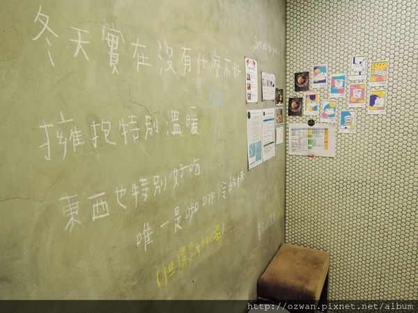 洗手間很寬敞、乾淨,不刷油漆的牆上以可愛粉筆字體寫著something...
