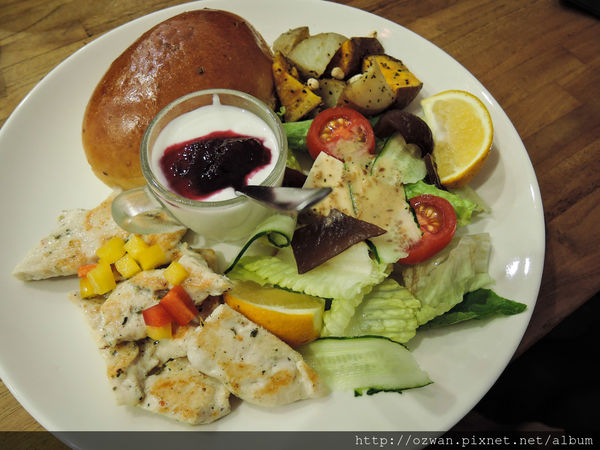 相當豐富的擺盤與健康的食材,本來看網路菜單覺得它份量看起來少少的,