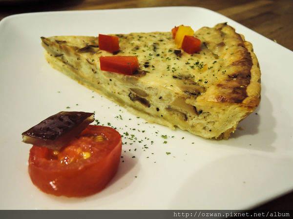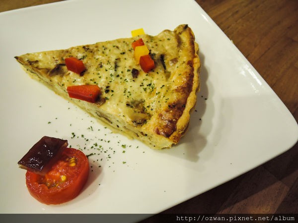 我的手工法式鹹派,今天有兩種口味,蘑菇與培根,不吃豬肉的我自然選蘑菇,