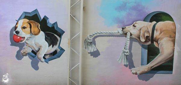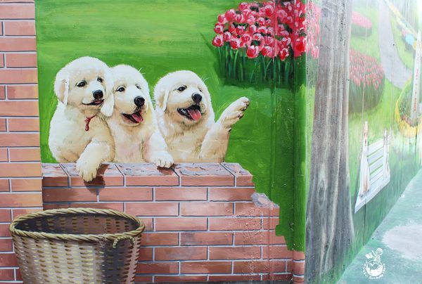 ▲有的還營造出狗狗從牆面衝出來的感覺,記得我國二有養過一隻米格魯獵犬,真的是非常得活潑好動,也因為如此雙親把牠送給住在鄉下的親戚養了,算是一段傷心的往事吧!