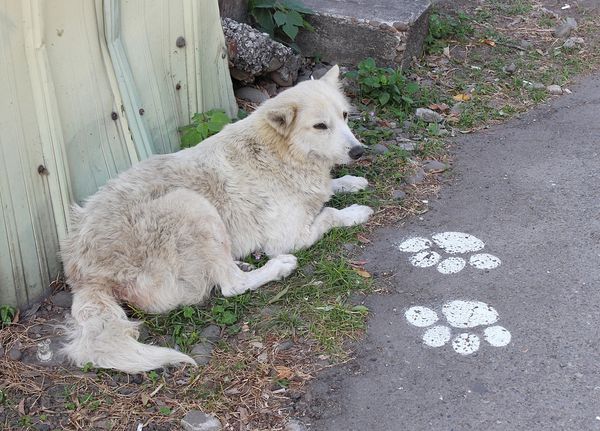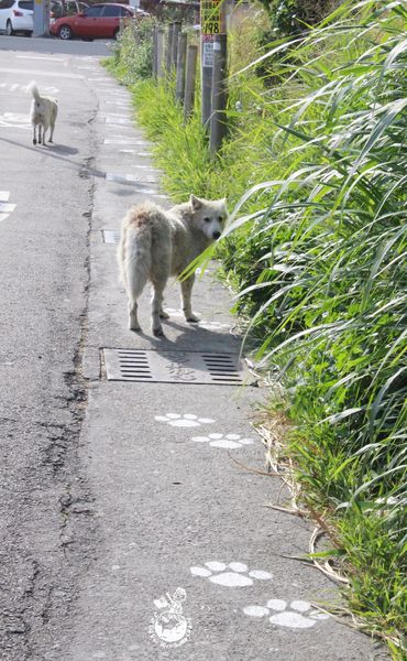 ▲往忠犬3D彩繪巷的馬路和牆面都會有狗狗的腳印,跟著腳印走3-5分鐘即抵達