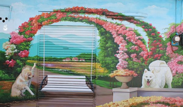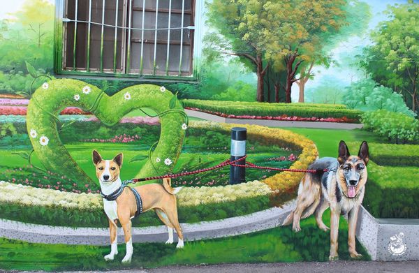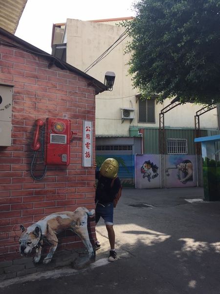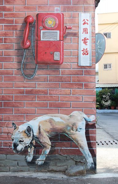 ▲在公共電話下解放的鬥牛犬的很神似沙鹿美仁里彩繪巷的畫風,不知是不是出自同一位創作者之手?