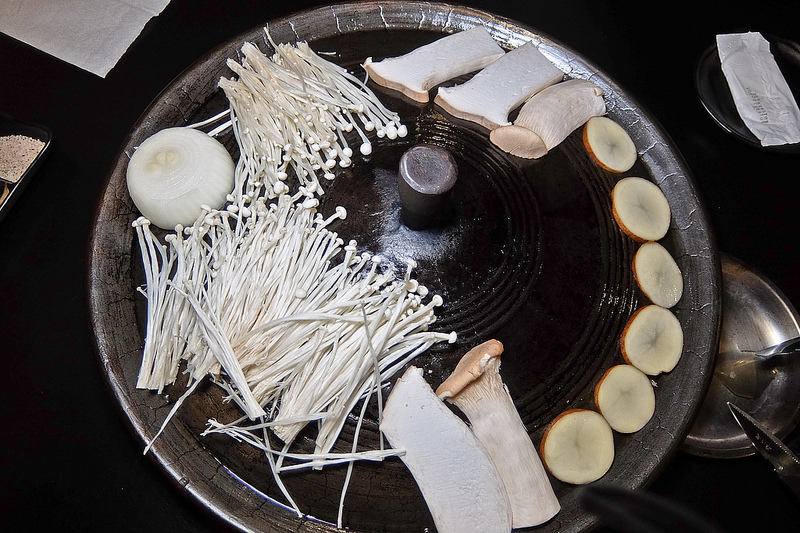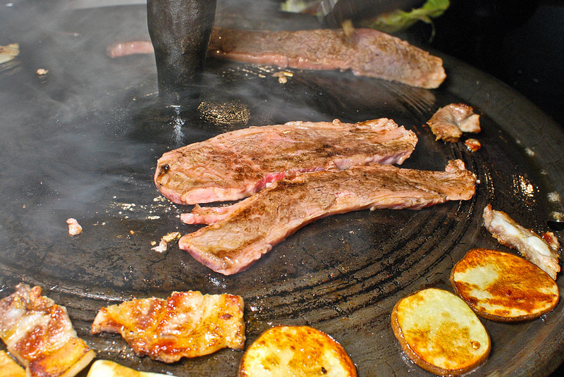 這是韓國木浦當地有名的烤肉法, 過去它真的是個鍋蓋, 我倒覺得有可能是真的在煮食過程中順便用鍋蓋烤肉