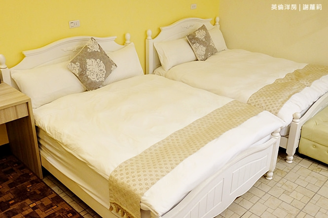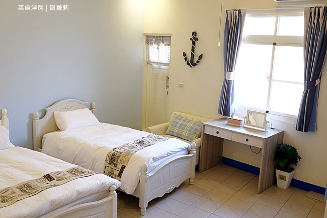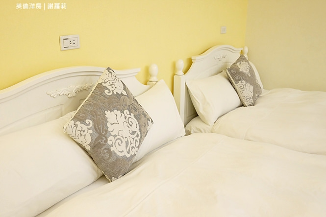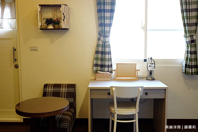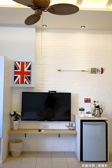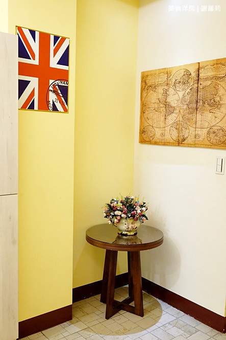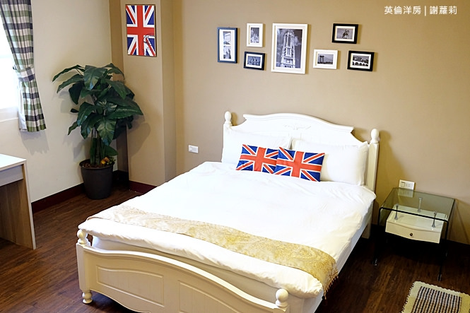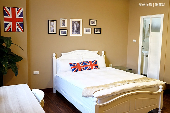 301房是我自己很喜歡的一間雙人房,裡面的風格就是很鮮明的復古英倫風情,融入著大量國旗圖示,像是抱枕、壁畫,連綴點的裝飾照片也很英國風呦!