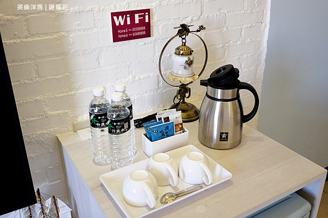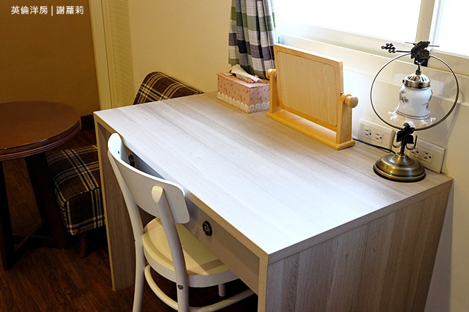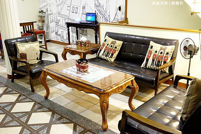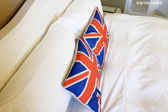 呼應著旅館名字,裡面處處融入著英國元素,像是閱兵圖抱枕、國旗旗幟的小盒子、面紙盒,其中還交織著些許復古味道。