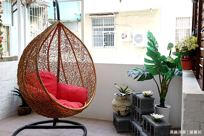 嗅得到老宅主體的懷舊氣息,那翻修之後的新風貌可是非常迷人呦!這次入住在地小有名氣的英倫洋房,充滿著濃濃的南法鄉村風,好喜歡它獨立的休憩空間,木製藤椅懸掛垂吊,光看那景像就給人一股十足的渡假悠閒感呢!