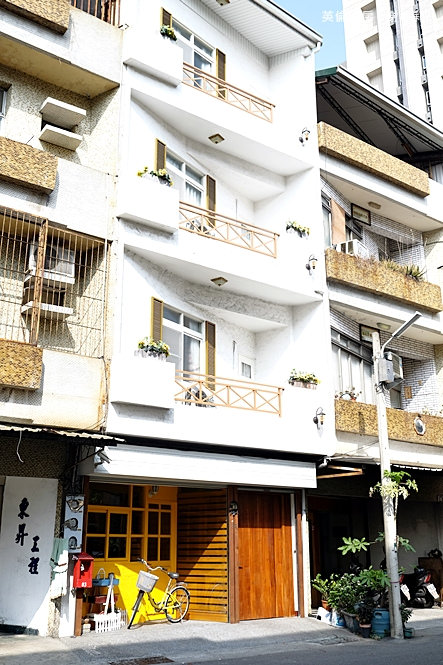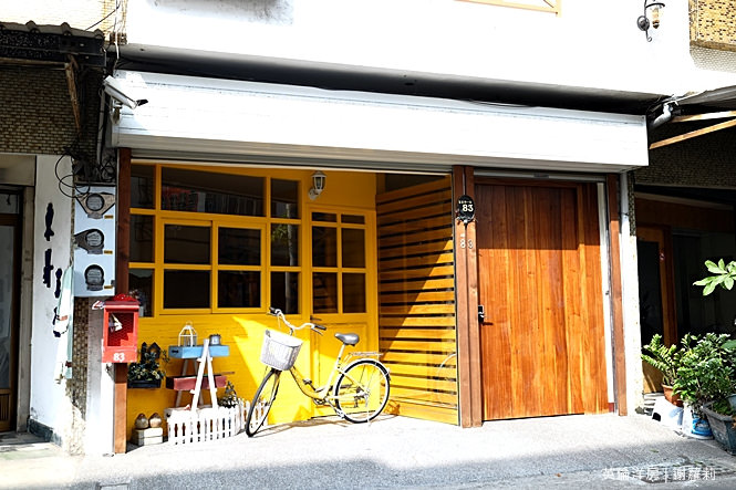 大門漆成亮黃色,門口還擺放著一台很鄉村的腳踏車,這幅風景給人一種好舒服的感覺,有著城市中難能可貴的孄靜氛圍。