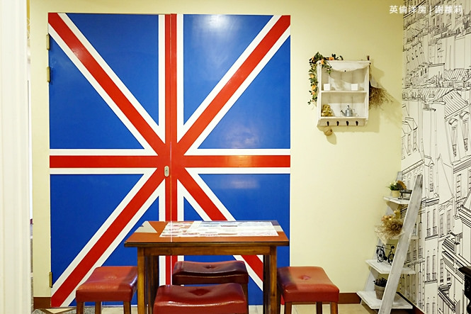 當然帶有英倫的元素也是少不了,所以這個房型,仍舊是能瞧見國旗旗幟的壁畫。