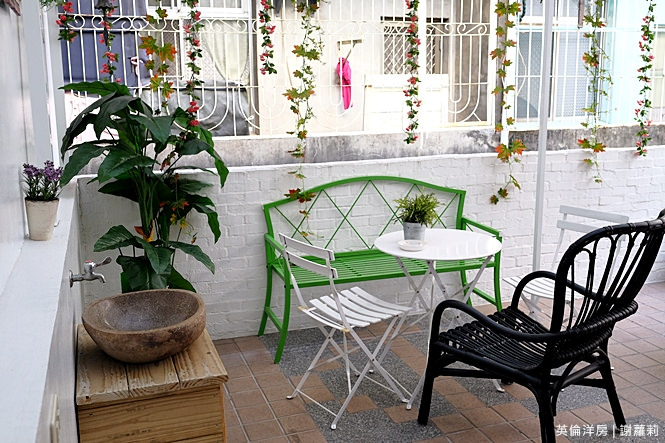而英倫洋房還有一個地方我非常非常喜歡,就是這個在二樓的露天陽台,其實這是旅館主人特別規畫出來的空間,充足的明亮光線,感覺坐在裡面就有滿滿的好心情。