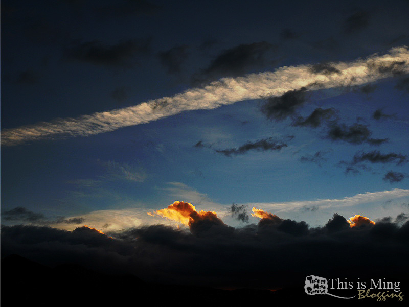 早晨的天空雲彩變化很大,但等日出有時要有點耐心與運氣,通常像這樣的雲出現時,就知道太陽快露頭了。可是今天的太陽似乎在嘲笑我的經驗,硬是在雲層中藏了好一會,甚至還暗了下來,讓我一度以為今天是否沒有日出了呢?
