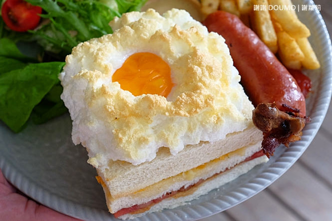 這名字簡直取得太棒了,打發蛋白,讓半熟蛋黃就像顆雲朵上的太陽,這道 Brunch 我非常推薦,不僅秀色可餐,連味道也很出色。