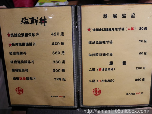 上面的食材會依季節及漁獲不同而不同,請依實際食用為主