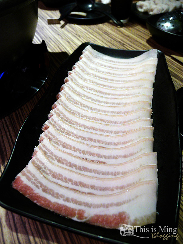 這是我推薦的帶皮豬五花(NT.200),大部分火鍋店的豬肉盤就真的只是梅花豬或去皮的五花肉,因為一般豬肉攤的帶皮部位,都會拿去給人做爌肉或東坡肉。但幾年前在某火鍋店吃過帶皮豬五花後,就開始喜歡上這口感了,涮過的豬皮部位會變硬且Q彈,搭配油花部位的軟嫩,一口肉片,多種口感。