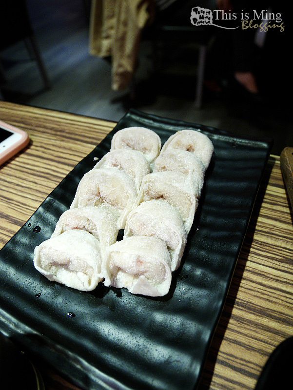 這是店員大推的手工魚餃(NT.80),燙起來十分多汁,只是這天我們吃太多肉啦!最後有點滯銷。