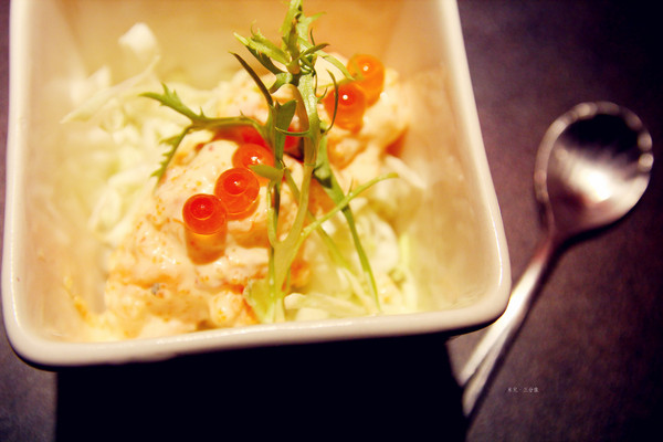 底部高麗菜絲墊底 上面擠滿滿的龍蝦沙拉