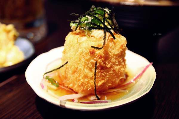 然後有炸蒜片以及洋蔥絲 還有一顆溫泉蛋
