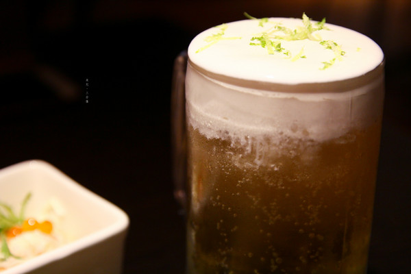 下面是汽水上面是奶昔 店家還有撒一些鹽巴以及檸檬皮
