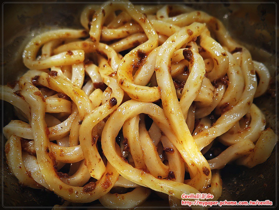 先上桌的是醬拌烏龍麵,麵體相當的紮實有咬勁,老闆是說特別挑選了成本較高的讚岐烏龍麵!難怪口感特別有彈性,搭配老闆特別調製的肉醬味道特別香滑。