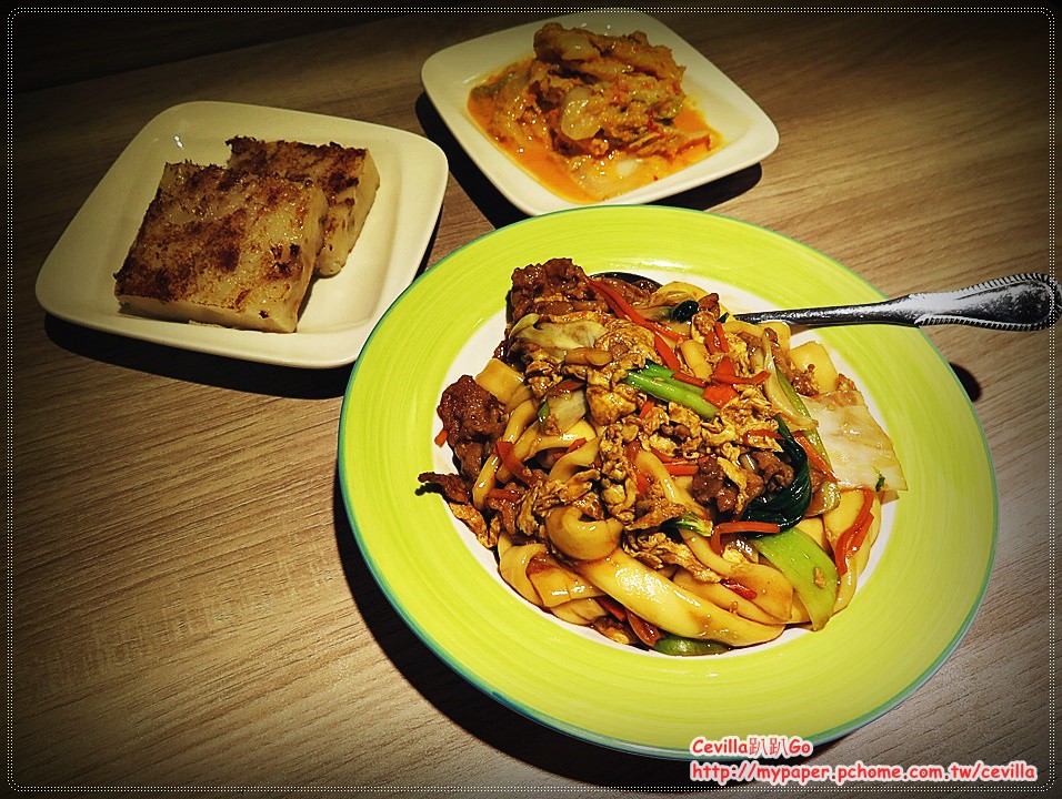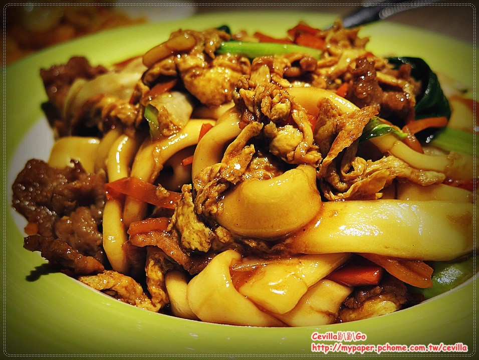 使用較有彈性的粿條,不是切片的河粉口感較好,醬香味也有出來,還加了不少的肉片,炒蛋和青菜。平時午餐一個人加杯飲料和小點也是很豐盛。