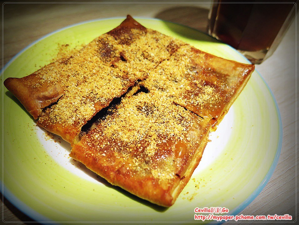 類似棗泥鍋餅的做法,內餡換成紅豆泥,煎好的鍋餅表面再灑上花生糖粉,味道很香又好吃。