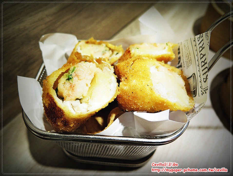 原以為是市售現成的沙拉捲,不過不太一樣,內餡是鯛魚片,鳳梨片和沙拉醬炸熟味道甜甜的要趁熱吃,底層一樣有蝦餅。(炸點類口味都很近似,沒有太大的差異性,可以挑幾樣吃看看,不然會和我們一樣很快胃就被塞飽喔!)