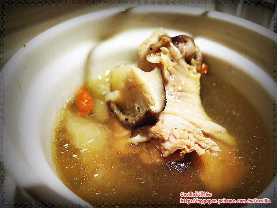 別看這小小一盅,全部好料都集中在裡頭,原以為是小翅腿,後來喝湯時才發現是切塊的雞腿,湯頭味道不錯是中藥燉補的香氣,連平常不太喝湯的leo也喝了一大半。