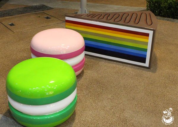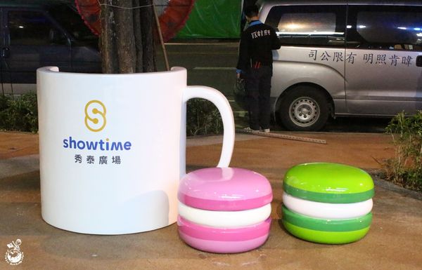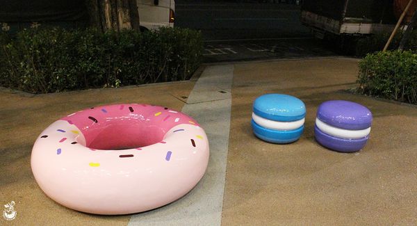 ▲兩館戶外走道都有放置甜點裝置藝術,S2館的是今晚(3/8)才有的,稍早我看完《金剛:骷髏島》特映會走到那發現的