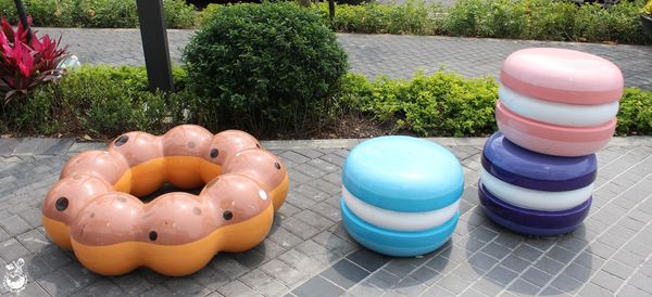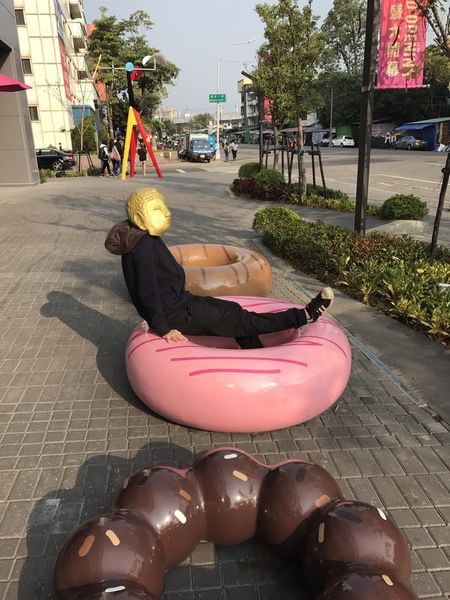 ▲S1館的戶外的甜甜圈已經有很多人來「品嚐」了,這些裝置藝術真的很受小孩子和一些少女歡迎,幾乎都會停下腳步和自己喜歡的甜甜圈口味合影一番