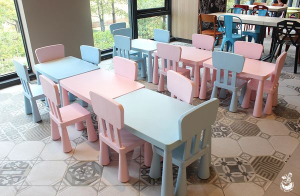 ▲座位數很多,有趣的是竟然還有兒童區,粉紅色搭配淡藍色的小桌子小椅子好可愛