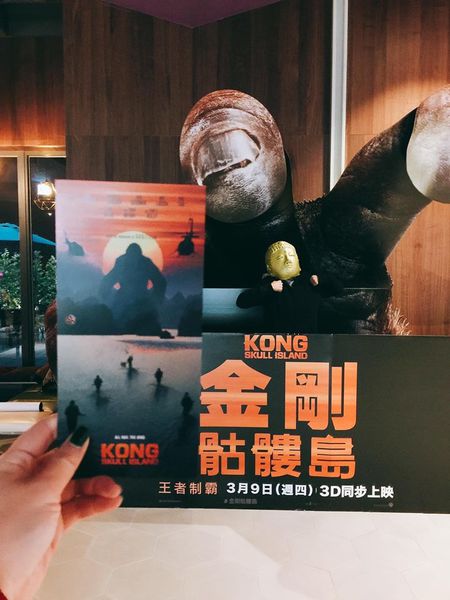 ▲稍早很幸運地因為友人參加秀泰的粉絲頁活動抽中《金剛:骷髏島》特映票的關係體驗到巨幕影廳(衰包我沒抽中我要因此買醉一晚),走進去有種要看太空劇場的錯覺(嗯?),此片金剛的size超大,剛剛是在巨幕影廳觀看感覺又更大隻了!在此看爽片的爽度更上ㄧ層樓啊啊啊!(跟金剛ㄧ起捶胸吶喊)