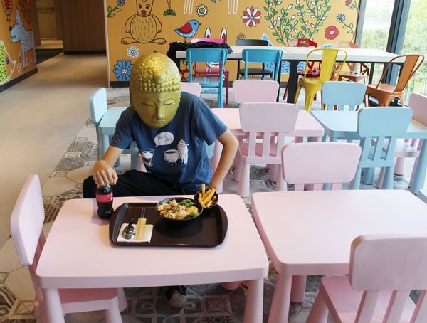 ▲第一次在美食街體驗坐在兒童座位用餐,頗有童趣和新鮮感