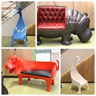 ▲讓人小歇一會兒的椅子很吸睛,都是動物造型的