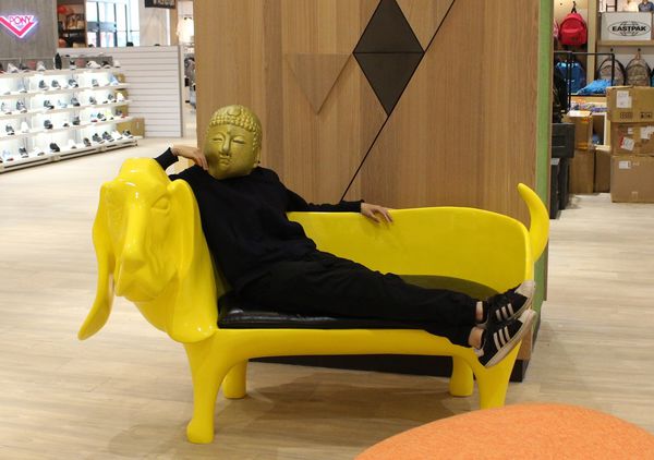 ▲天!黃色臘腸狗椅也太適合我了吧!根本是我的椅子啊,坐起來無違和XD